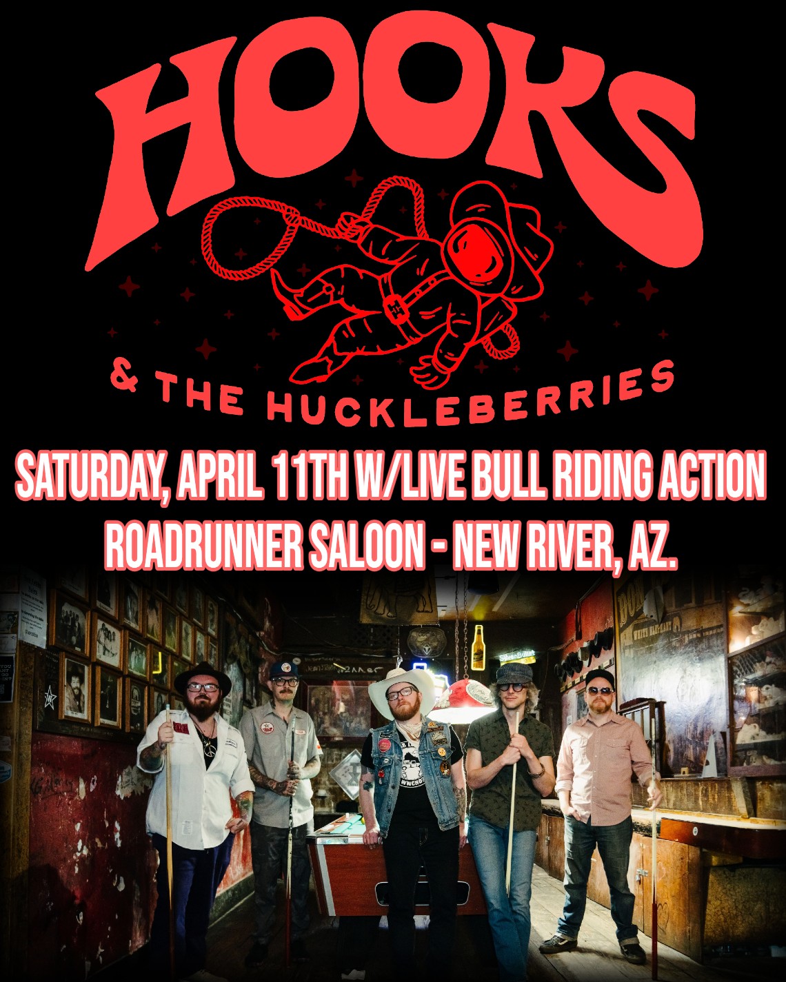 WE are thrilled when we are able to get some long sought after, first time talent to The Roadrunner Saloon. We have been trying to get these guys for the last couple years, and finally did it. New Mexico brings us Hooks & The Huckleberries to go with two rounds of LIVE Bull Riding action.