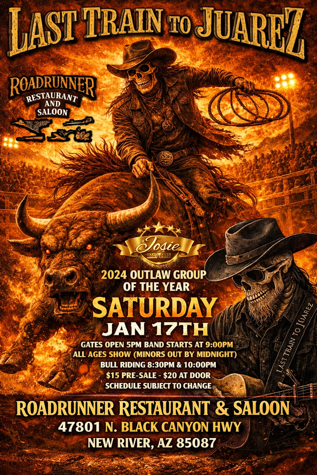 · Cash Only at the Door – We have an ATM inside and/or they can order tickets online at https://roadrunner.bammtickets.com/