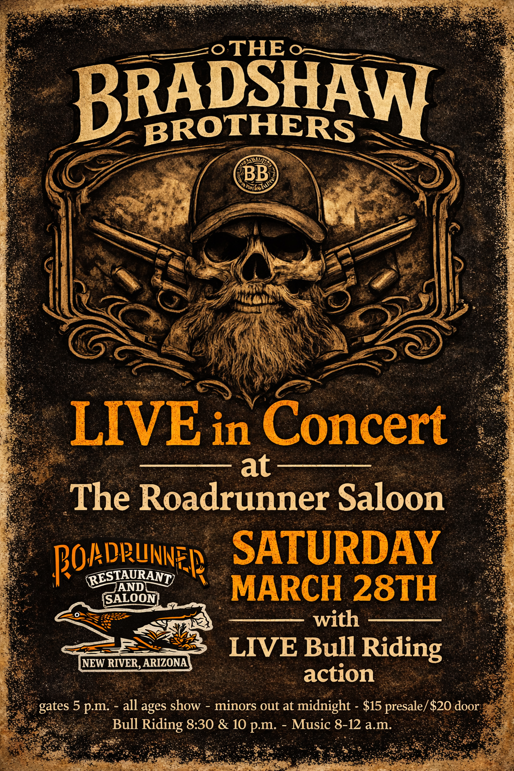 · Cash Only at the Door – We have an ATM inside and/or they can order tickets online at https://roadrunner.bammtickets.com/