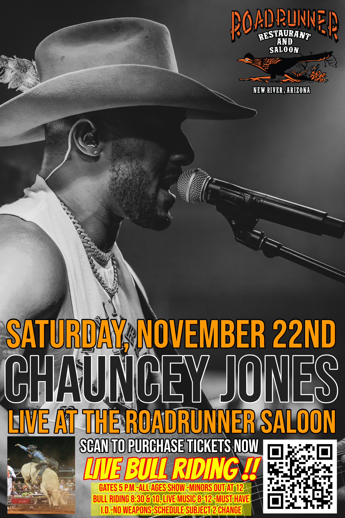 Chauncey Jones returns to The Roadrunner Restaurant & Saloon Saturday August 12th with two rounds of LIVE Bull Riding action for a jam packed night of entertainment.
